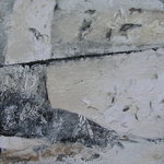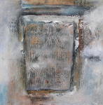 2015Van anonimiteit is geen sprake op de graven in de grafkelders van een kerk te Porto, hier staat dezelfde tekst zelfs meerdere malen over elkaar gedrukt in een ander lettertype. Omdat de tekst qua plaats niet correspondeert met de eerste en wellicht eerder gedateerde tekst geeft het een spannend nieuw beeld op meerdere grafstenen. ”Is dit met opzet zo gedaan en zo ja, waarom?” In deze serie een aantal doeken met aandacht voor de tekst als beeldteken en de vorm van de grafsteen.