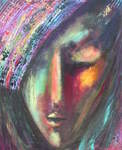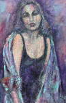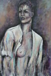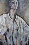 2013Textiele elementen spelen een belangrijke rol, vaak roepen details in de afbeelding een associatie op met textiel. In mijn serie “portretten” verwijs ik naar het gebruik van textiel als verhullende of onthullende factor. Zie ook bij: Model met vleermuismouw.